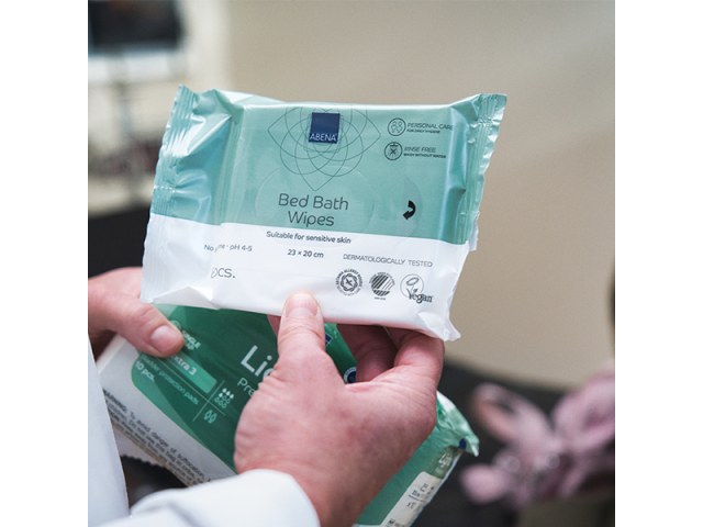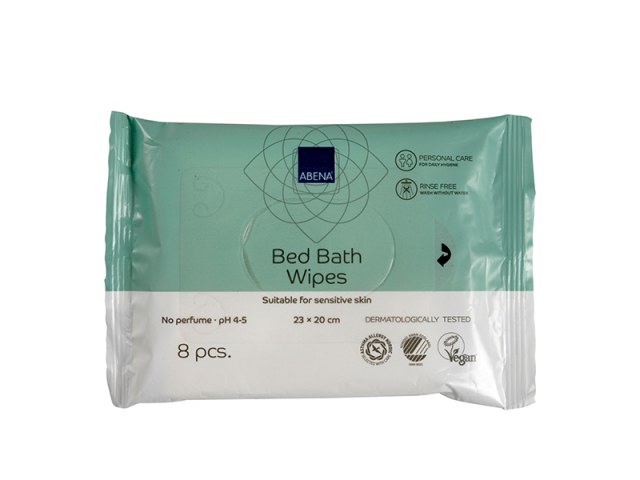 Τα Υγρά μαντηλάκια καθαρισμού της Abena είναι κατασκευασμένα από 100% βισκόζη και προορίζονται για την προσωπική φροντίδα. Είναι κατασκευασμένα σε υψηλή ποιότητα και πυκνό υλικό, τα οποία δίνουν απαλή αίσθηση στο δέρμα. Τα συστατικά έχουν επιλεχθεί προσεκτικά και είναι πιστοποιημένα, το οποίο σημαίνει ότι έχει γίνει το καλύτερο δυνατό για να ελαχιστοποιηθούν οι κίνδυνοι δημιουργίας πχ. αλλεργιών. Είναι ασφαλή στη χρήση τους. Το προϊόν παρέχει απαλό και εύκολο καθαρισμό και αποτελεί ιδανική λύση για τους κλινήρεις ασθενείς. Το προϊόν μπορεί να θερμανθεί σε φούρνο μικροκυμάτων (30 δευτερόλεπτα- max 800W) για να παρέχει την ευχάριστη αίσθηση όταν χρησιμοποιείται.