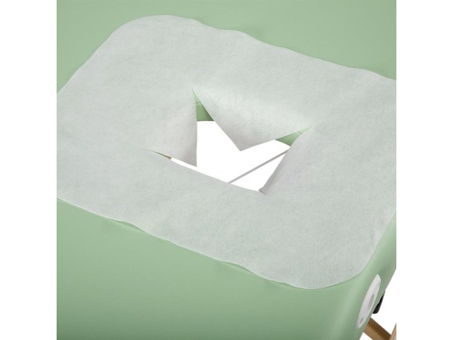 Τα καλύμματα είναι σχεδιασμένα για την οπή του προσκέφαλου, δηλαδή το άνοιγμα στο κρεβάτι μασάζ. Λόγω του μεγέθους 27,5 x 35 cm, εφαρμόζουν σωστά στα πρότυπα μεγέθη των περισσοτέρων επαγγελματικών κρεβατιών μασάζ και εξεταστικών τραπεζιών.
