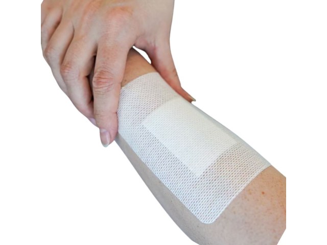 Σύνθεση επιθέματος: πολυεστερικό απορροφητικό μαξιλαράκι, μη προσκολλητικό προς το τραύμα.