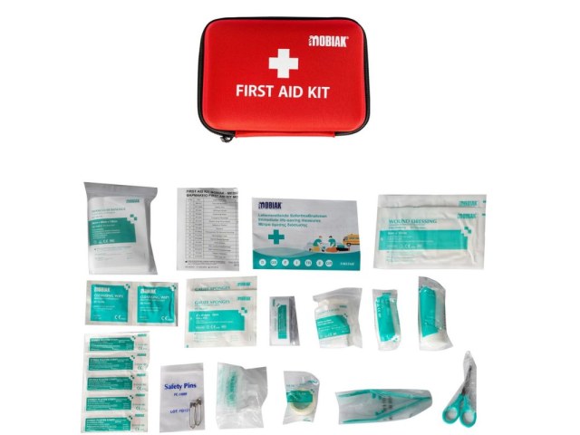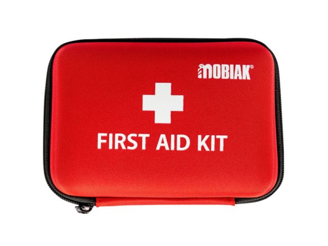 Φαρμακείο First Aid Kit MOBIAK σε μέγεθος Medium, σε θήκη EVA για οργανωμένη αποθήκευση βασικών ειδών πρώτων βοηθειών στο σπίτι, στο αυτοκίνητο, στο γραφείο ή σε επαγγελματικό χώρο.