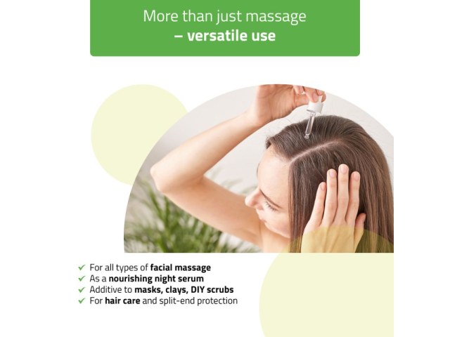 Για επιπλέον χρήση, μπορεί να αξιοποιηθεί και στην περιποίηση μαλλιών ως λάδι λείανσης στα μήκη, ανάλογα με τις ανάγκες της ρουτίνας.