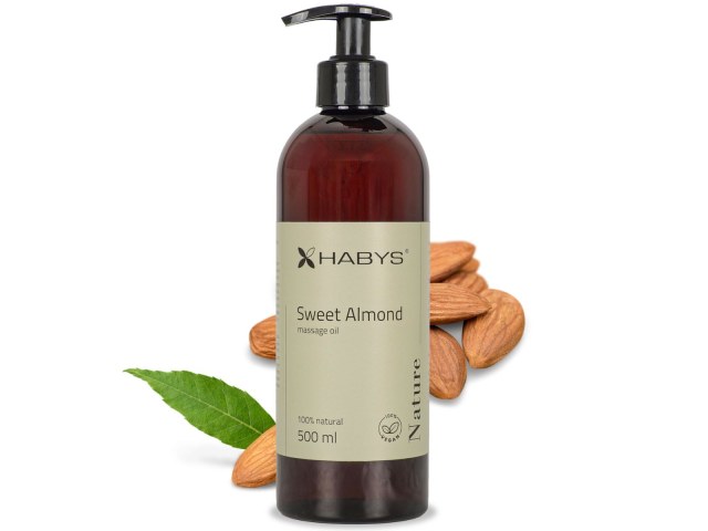 Το HABYS Nature Sweet Almond είναι 100% φυσικό λάδι γλυκού αμυγδάλου σε φιάλη 500 ml με αντλία, κατάλληλο για μασάζ προσώπου & σώματος, home SPA και ως βάση για μείγματα με αιθέρια έλαια.