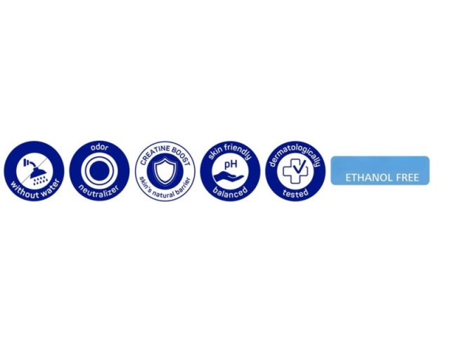 Άμεσος καθαρισμός: Καθαρίζει αποτελεσματικά χωρίς νερό, ιδανικό για ευαίσθητο ή μολυσμένο δέρμα.