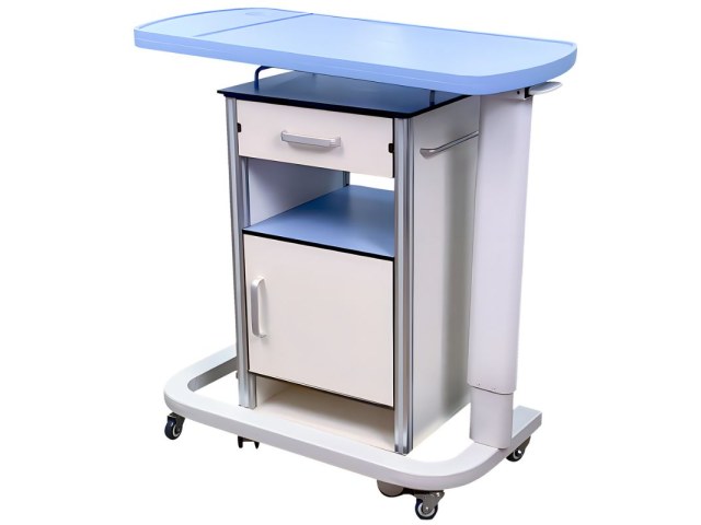 It includes a drawer, cupboard and shelves for organizing everyday care items, personal belongings, or small equipment.